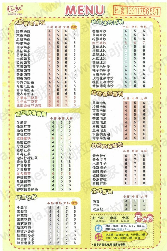 自由自在珍珠奶茶店的外卖单 By Vincent@2012-01-06 10:59:37