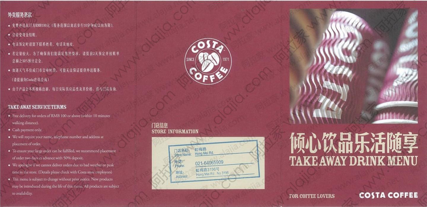 COSTA COFFEE(虹梅路店)的外卖单 By milin@2012-03-02 12:45:18