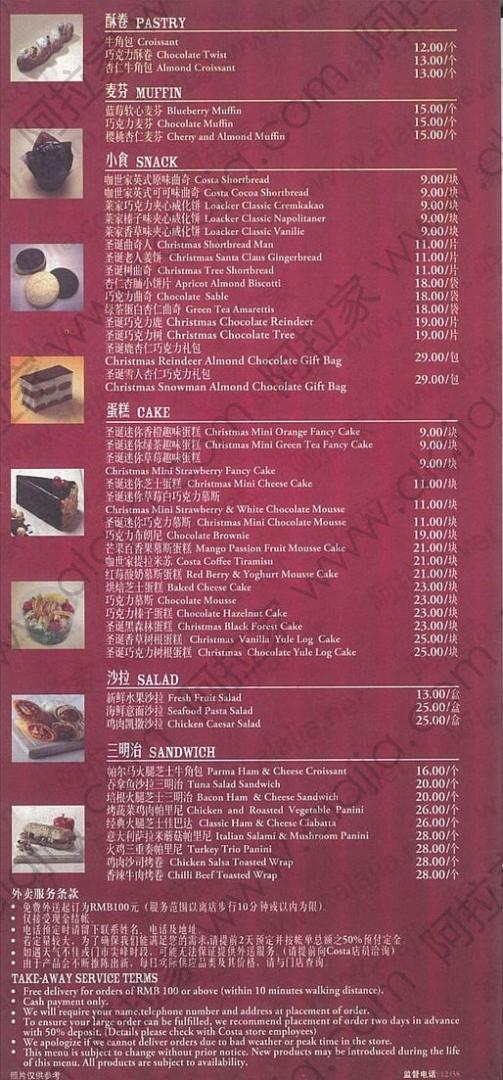 COSTA COFFEE(虹梅路店)的外卖单 By milin@2012-03-02 12:49:03