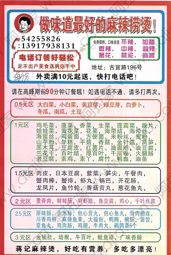 蒋记麻辣烫 古宜路店的外卖单 By milin@2012-03-05 20:38:06