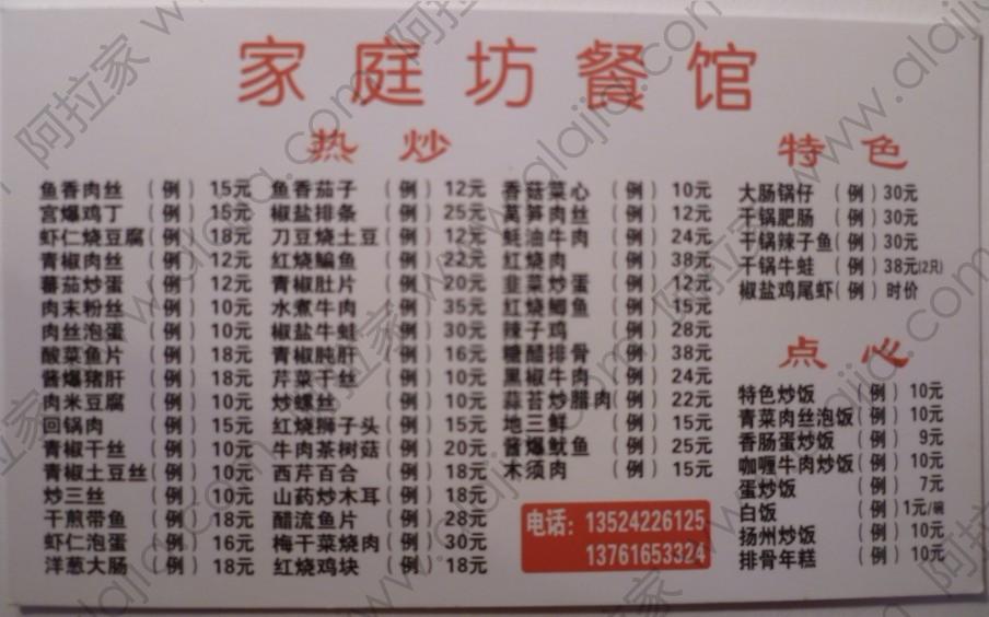 家庭坊餐馆 斜土路的外卖单 By milin@2012-03-15 02:00:24