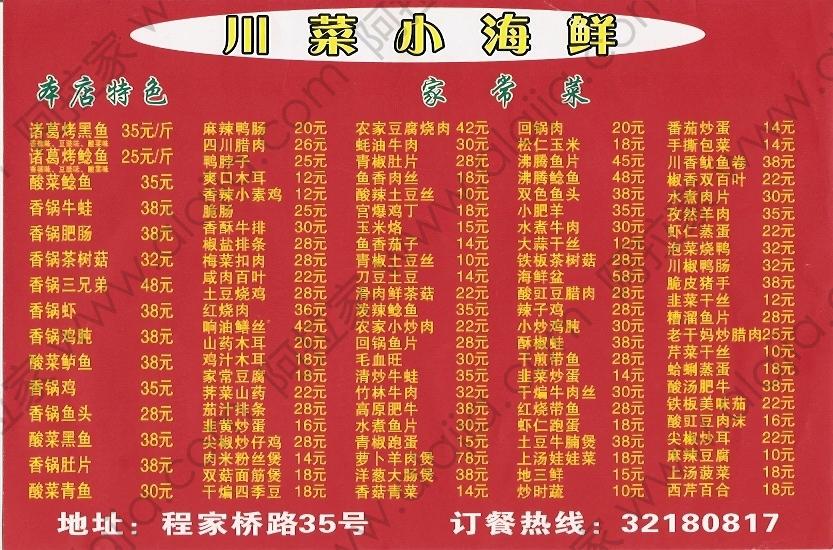 川菜小海鲜的外卖单 By zengyu@2012-05-04 11:09:33