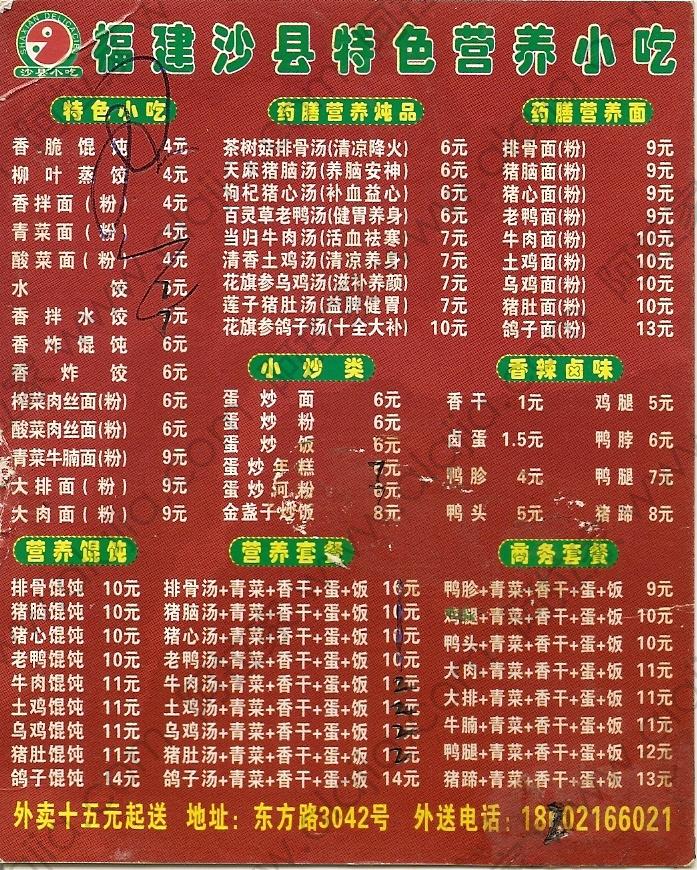福建沙县营养小吃的外卖单 By milin@2012-05-17 16:08:45