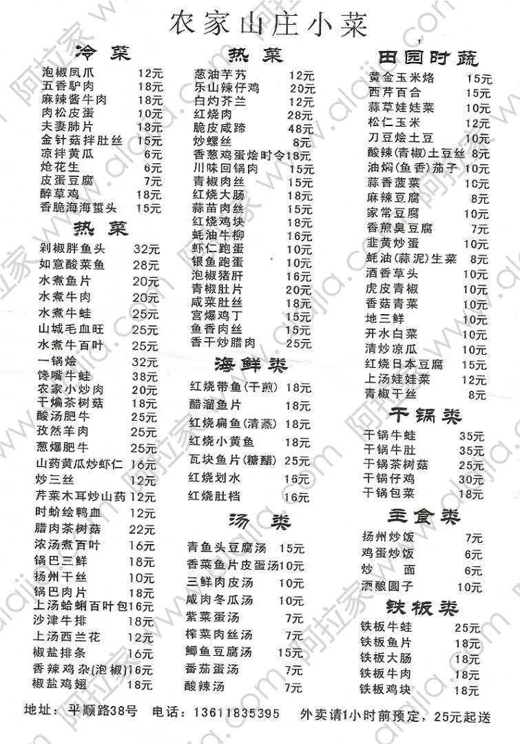 农家山庄小菜的外卖单 By liufang@2012-06-05 13:45:51