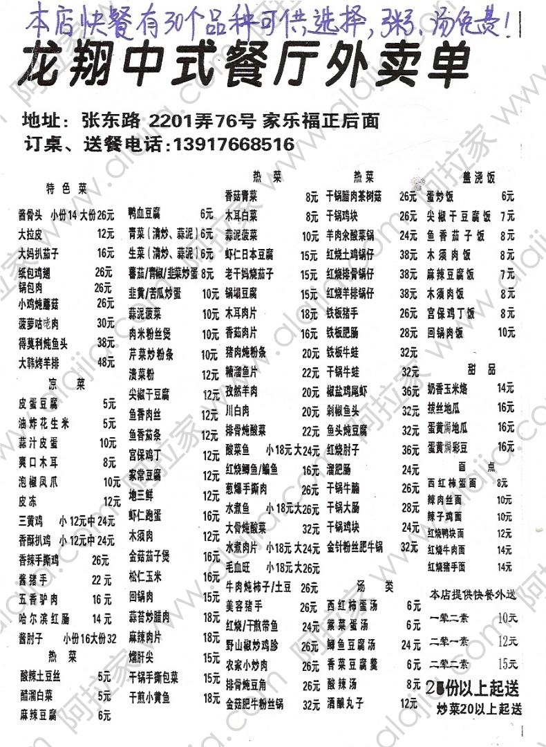 龙翔中式餐厅的外卖单 By milin@2012-06-14 13:44:04