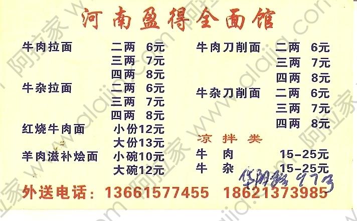 河南盈得全面馆的外卖单 By Via_PP@2012-10-23 11:05:36